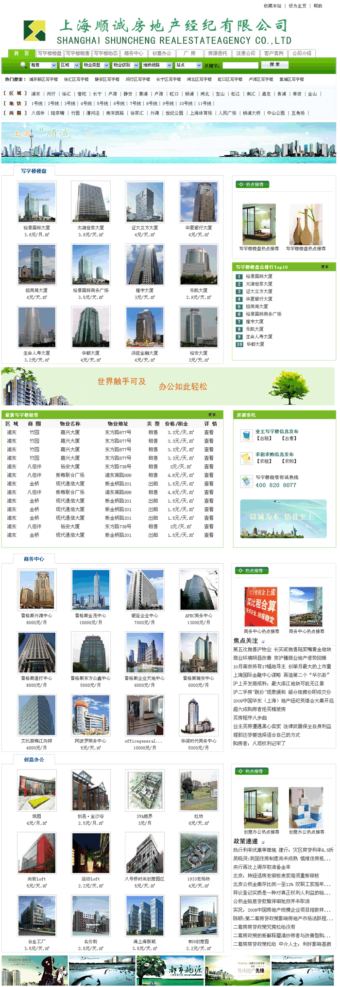上海順誠房地產(chǎn)經(jīng)紀(jì)有限公司是一家主要提供上海寫字樓等商業(yè)性用房的租賃服務(wù)的公司,為國內(nèi)外投資者、業(yè)主及各類商業(yè)租戶提供高質(zhì)量全方位的租賃服務(wù),如果您希望既不用大量的時間和精力、又能尋找到自己滿意的辦公房,您就可以委托本公司為您提供“全程免傭”感心代理服務(wù),公司以經(jīng)驗豐富的經(jīng)紀(jì)人根據(jù)客戶的預(yù)算及對地理環(huán)境、交通 、設(shè)備等的要求,免費提供詳細(xì)的物業(yè)資料和樓盤實地視察,為客戶爭取最佳條件及作出專業(yè)分析,務(wù)求于合理公平的條件下進(jìn)行交易.在上海地產(chǎn)界,公司以認(rèn)真負(fù)責(zé)的敬業(yè)態(tài)度,為每一位客戶提供最完善的業(yè)務(wù)服務(wù),有效的業(yè)務(wù)管理體系、優(yōu)秀的房產(chǎn)精英,組成了我公司專業(yè)化的服務(wù)隊伍,使公司在房產(chǎn)界和服務(wù)對象中贏得了良好的信譽(yù),一向深得各大客戶的支持及信賴,務(wù)求與客戶建立長遠(yuǎn)關(guān)系。